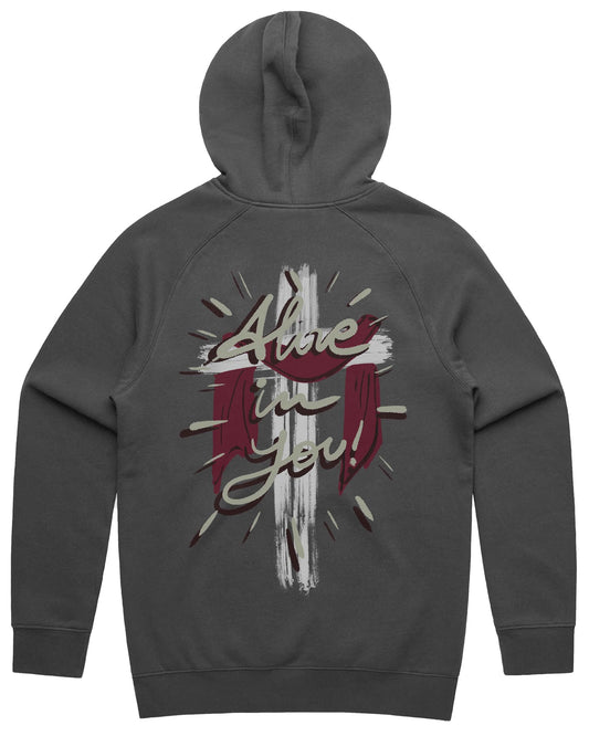 Christian Apparel in Australia | Christian Streetwear Clothes | Christian Brand | Christian Clothing line | Christian Merch that is so cool. Alive in You Hoodie - Charcoal